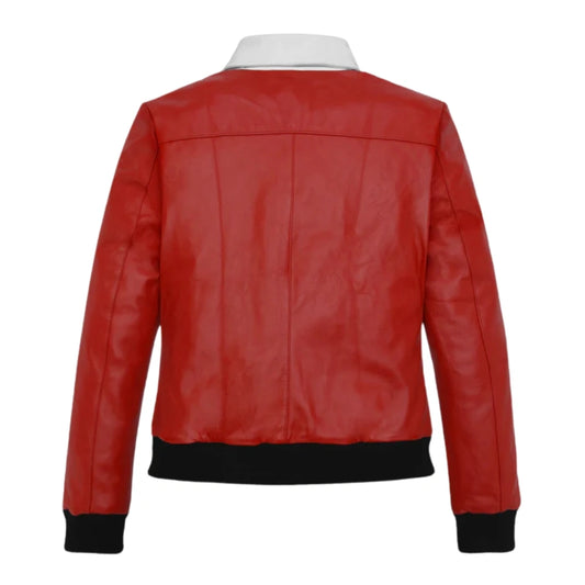 Stylish Red Leather Jacket with Contrast White Collar The Stylish Red Leather Jacket with Contrast White Collar is a bold and fashionable outerwear piece designed to make a statement. Crafted from real leather, it delivers durability, a smooth finish, and a premium feel that...- $179.00
