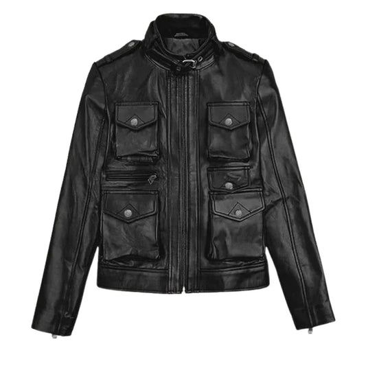 Women’s Black Multi-Pocket Leather Jacket - Black