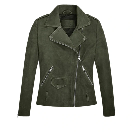 Women’s Olive Green Suede Leather Jacket - Olive Green