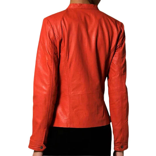 Women’s Red Slim Fit Leather Jacket - Red