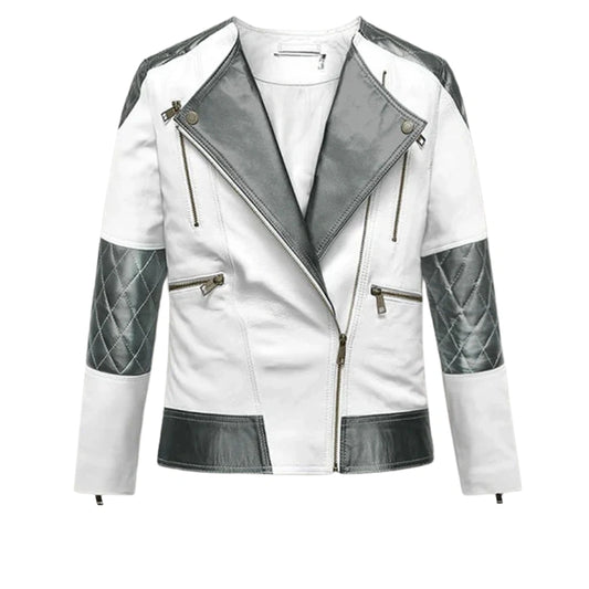 Women’s White and Grey Two-Tone Leather Jacket - White