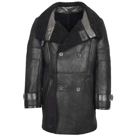 Men's Bryan Black Shearling Leather Full Length Coat - Black
