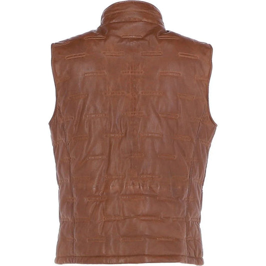 Men's Brown Quilted Leather Vest: Enhance your wardrobe with this men's brown quilted leather vest, a perfect combination of refined style and practicality. Crafted from premium genuine leather, this vest features a unique quilted design that adds depth and texture, making it a standout...- $144.00