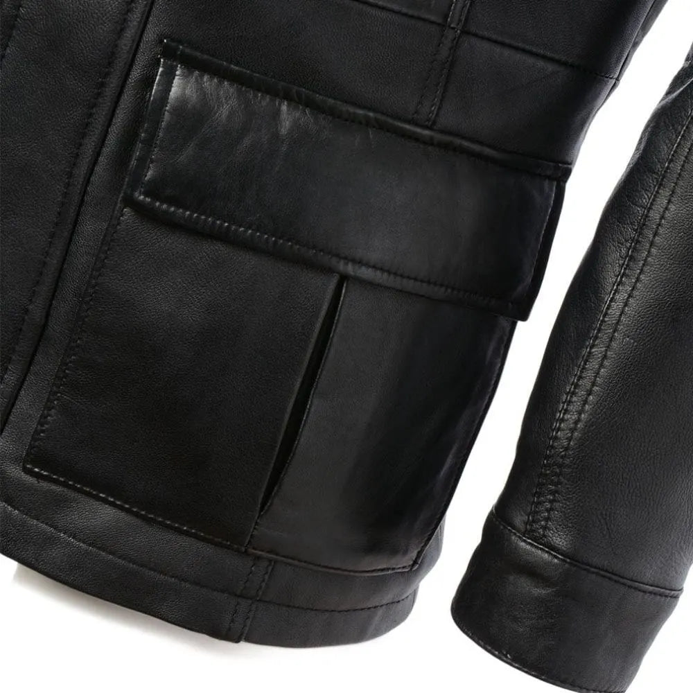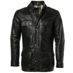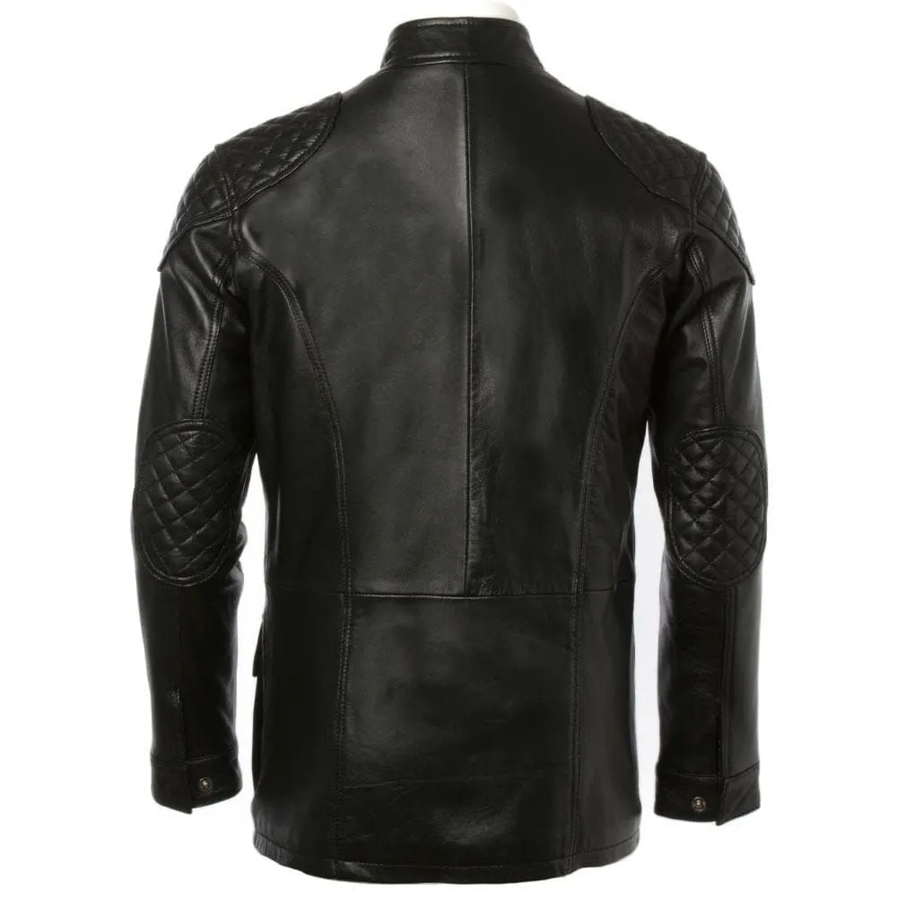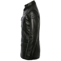 The Charlie London Men Long Length Leather Coat is crafted from premium genuine leather, offering a bold fusion of rugged style and practical comfort. Designed in a classic black finish, it features a zip and snap-button front closure, stand-up collar, and quilted shoulder and elbow patches for added durability. Functional flap chest pockets, side pockets, and an inner pocket provide ample storage. With a long-length silhouette and premium inner lining, this coat is ideal for cooler months. Whether for casual outings, daily wears, this coat delivers timeless edge and reliable warmth.