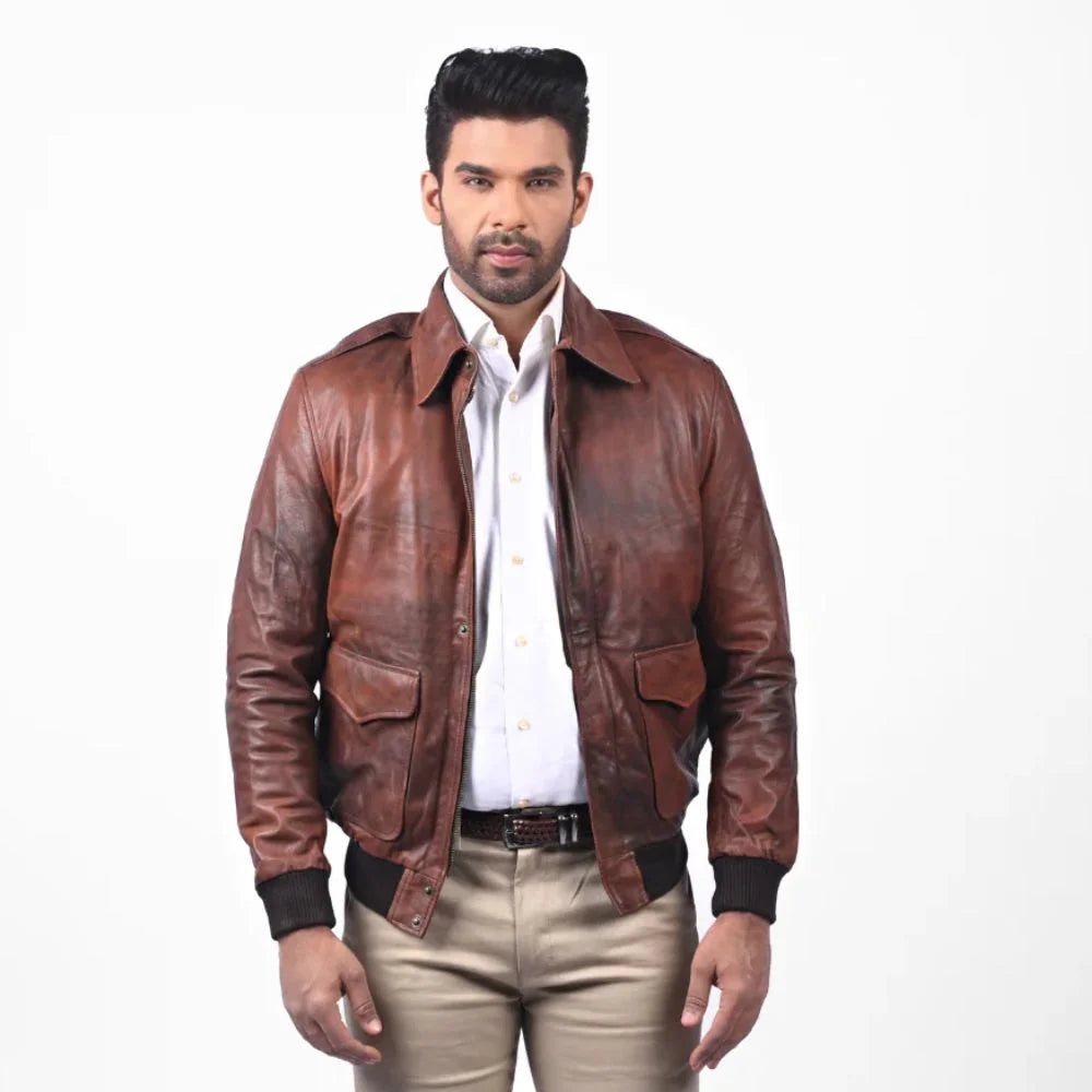 Elevate your everyday style with this Classic Brown Leather Bomber Jacket, designed to bring a timeless touch to any outfit. Crafted from premium leather, this Classic Brown Leather Bomber Jacket combines comfort and sophistication with its rich brown hue and traditional bomber design. The ribbed cuffs and hem offer a snug fit, while the spacious pockets add both style and practicality. Perfect for both casual and semi-formal occasions, this jacket is an essential addition for those who appreciate quality and classic style.