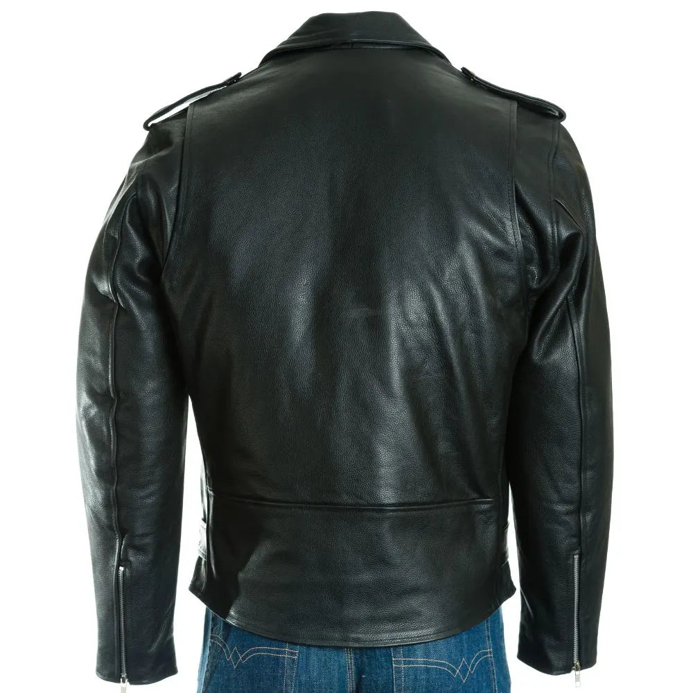 Channel timeless rebel style with the Men’s Black Classic Brando Style Leather Jacket. Made from premium genuine leather, this slim-fit jacket captures the essence of vintage moto fashion with a belted waist, asymmetrical front zipper, and a notch collar with snap-button detailing. It includes two zippered hand pockets and a chest pocket for secure storage. The zip sleeve accents and premium inner lining enhance both functionality and comfort. Perfect for fall through spring, this jacket is ideal for motorcycle rides, casual wear, or edgy night outings. A must-have outerwear piece that brings bold confidence to any street-style look.