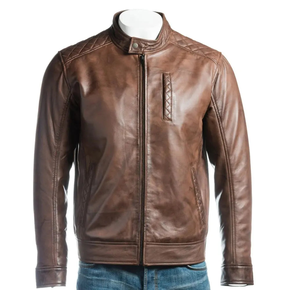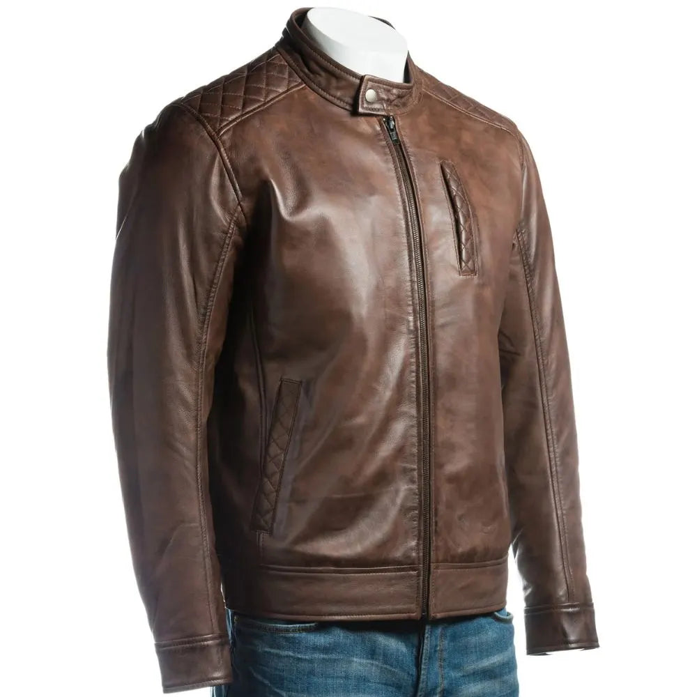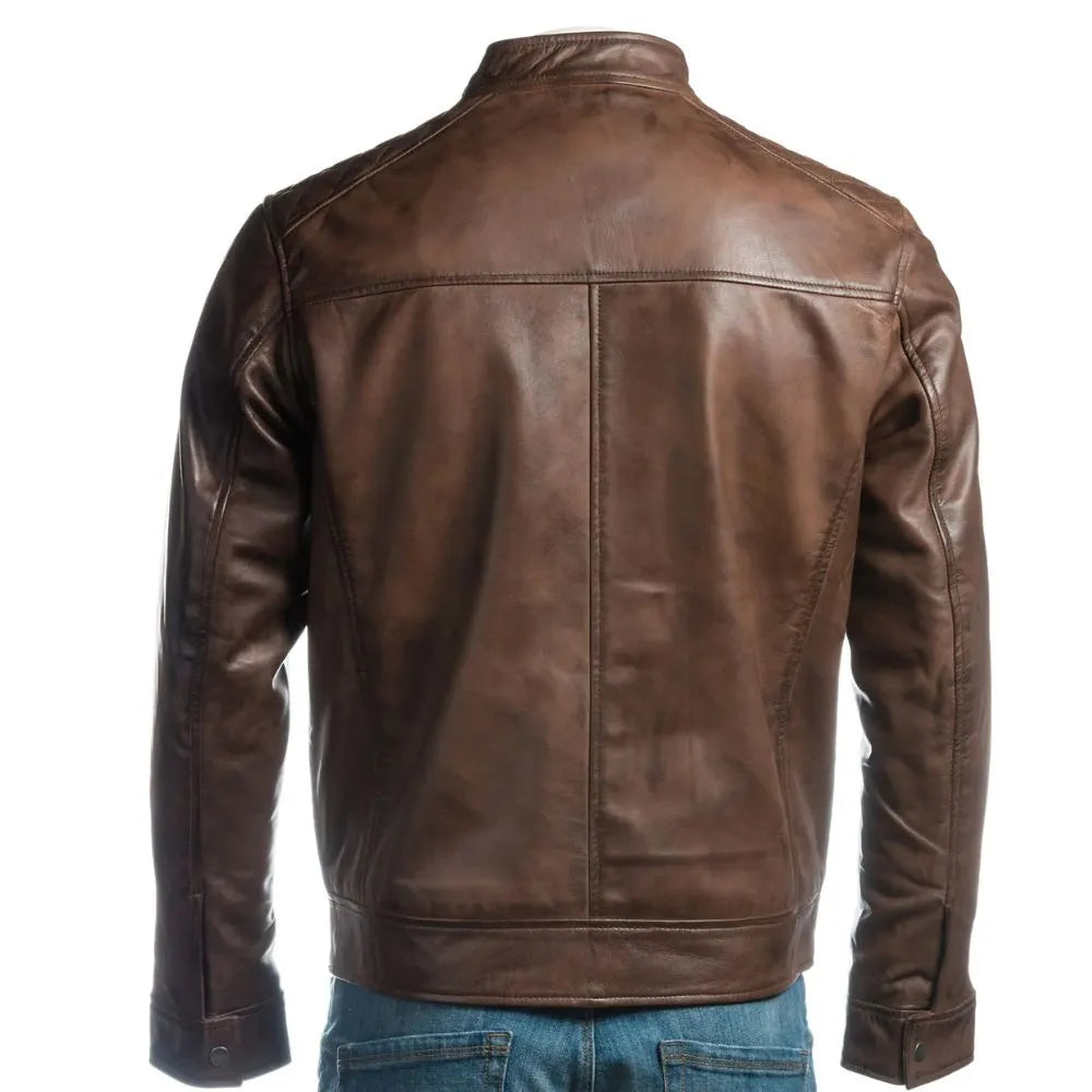 Step into sharp street style with the Men’s Black Slim Fit Shoulder Detail Leather Jacket, tailored from 100% genuine leather for durability and edge. This sleek jacket features a stand-up collar with a buckle strap, quilted shoulder panels, and a slim silhouette designed to contour the body. Functional zippered pockets and robust metal hardware add to its urban appeal. Perfect for transitional seasons, the premium inner lining ensures all-day comfort. Ideal for night outs, casual rides, or bold streetwear looks, this jacket fuses classic aesthetics with refined details for a look that’s both rugged and sophisticated.