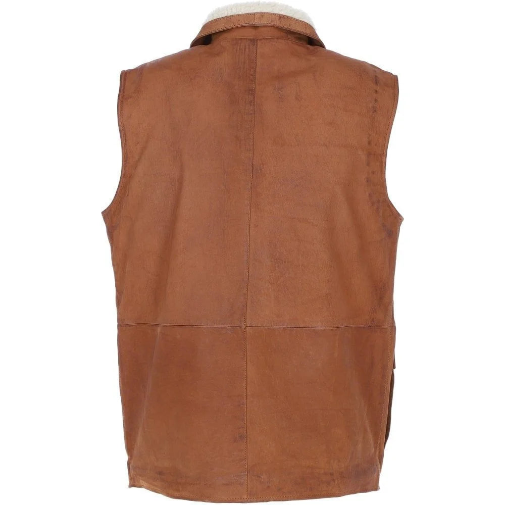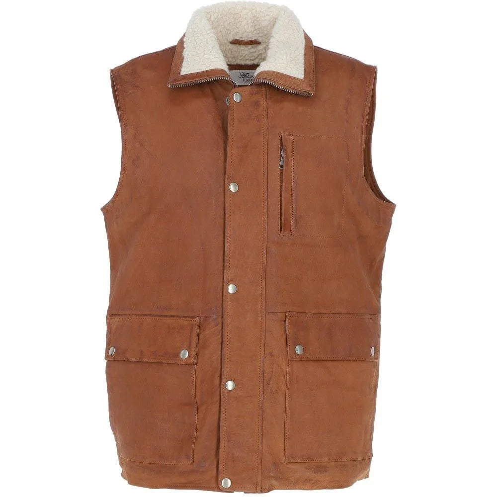 Add rugged charm to your wardrobe with this Men’s Brown Shearling-Lined Leather Vest, designed for both warmth and timeless style. Crafted from premium genuine leather, this vest features a luxurious shearling-lined collar for added comfort and a rustic aesthetic. The brown finish enhances its vintage appeal, making it the perfect layering piece for outdoor adventures, casual wear, or classic Western-inspired outfits. With multiple pockets, a durable front closure, and reinforced stitching, this vest offers both practicality and style. Whether you're out on the ranch, riding, or simply embracing a rugged, masculine look, this vest is built for versatility and comfort.
