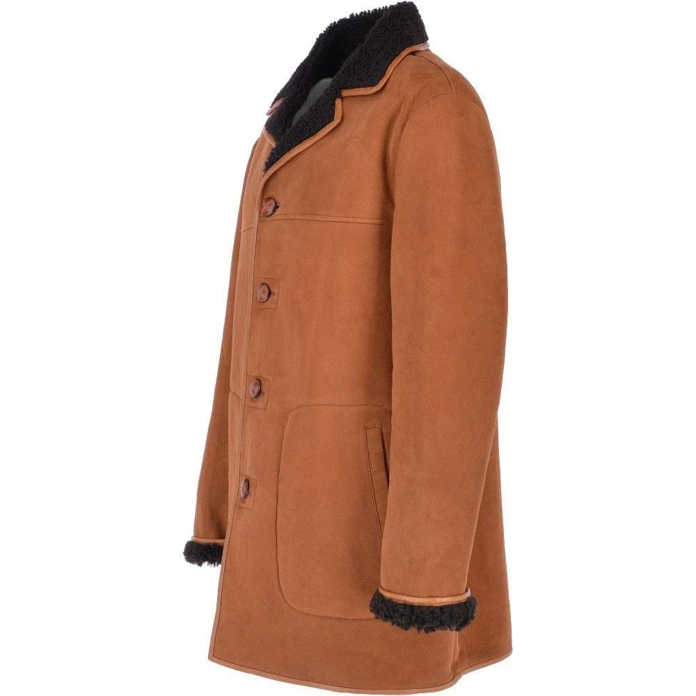 Elevate your winter wardrobe with this Men’s Shearling-Lined Suede Coat, a luxurious fusion of style, comfort, and warmth. Crafted from premium suede leather in a warm tone, this coat is designed for the modern man who values timeless sophistication. The contrast of the plush black shearling lining against the exterior adds a bold, elegant touch, ensuring you stay warm while looking effortlessly stylish.