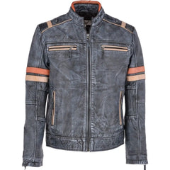 Make a bold statement with the Men’s Vintage Blue Leather Jacket, expertly crafted from 100% genuine leather. This slim-fit piece features quilted shoulder detailing and a rich vintage wash for a rugged, worn-in look. Designed with a zip front closure, stand-up collar, and four zippered pockets, it’s the perfect blend of function and edgy style. The premium inner lining ensures comfort and warmth, making it a versatile option for fall, winter, and spring. Whether you’re hitting the road or heading out for a night in the city, this jacket brings timeless biker attitude to any occasion.