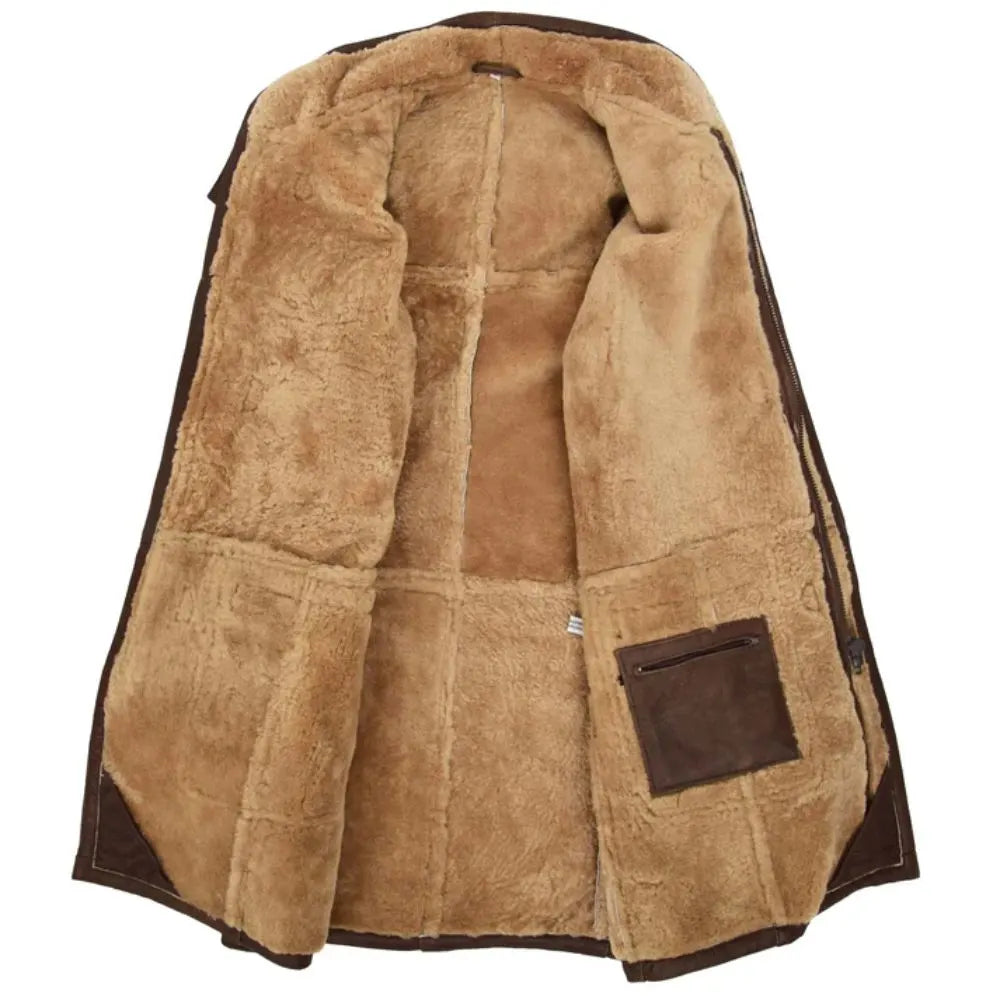 Stay warm in timeless style with our Men's Brown Leather Duffle Coat — a rugged yet refined outerwear essential for fall and winter. Crafted from 100% real leather, this coat features a buttoned duffle closure with classic toggles and a cozy faux fur hooded collar for extra warmth. The soft shearling-style inner lining ensures comfort in chilly weather, while the adjustable drawstring hood offers additional protection against the cold. With two front flap pockets and an inner pocket for convenience, this regular-fit coat is perfect for outdoor adventures, travel, or casual daily wear with a touch of vintage flair.