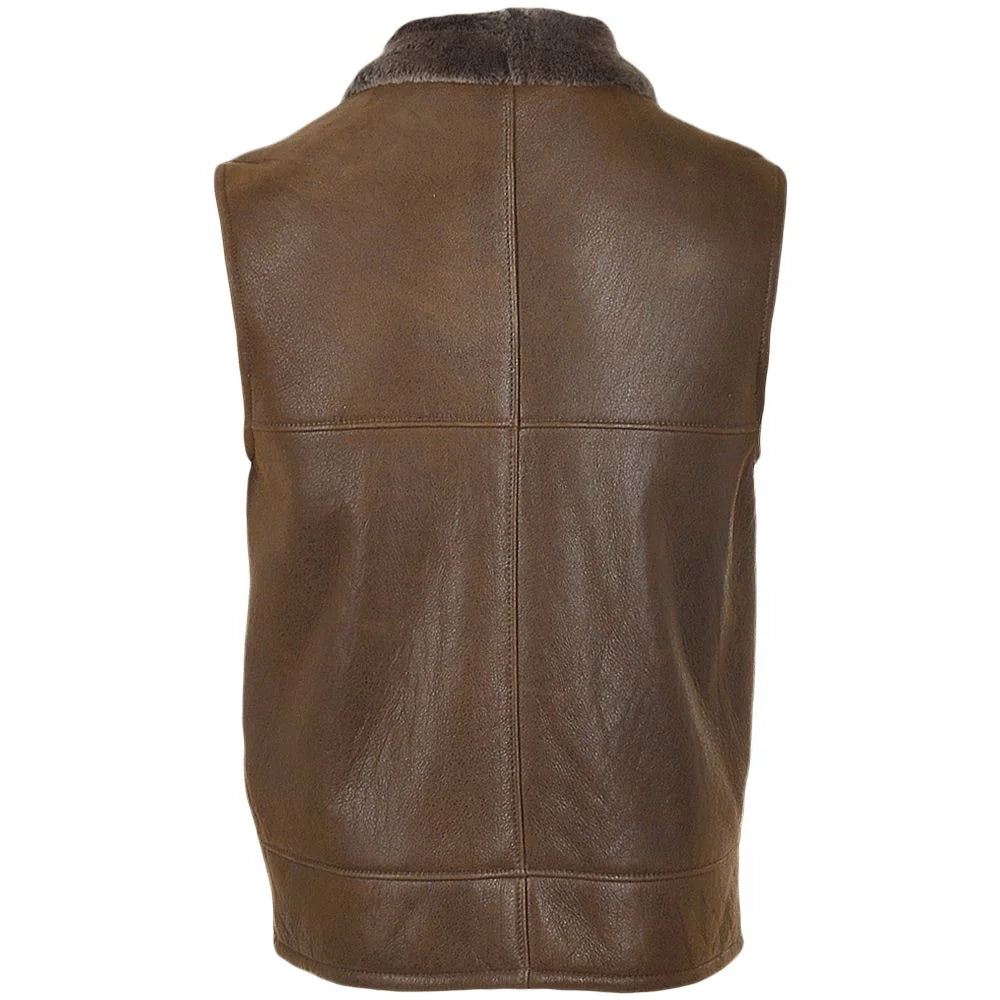 Embrace rugged elegance and all-day warmth with this men's brown shearling-lined leather vest, designed for those who appreciate both style and functionality. Crafted from premium genuine leather, this vest features a brown finish that enhances its vintage appeal. The luxurious shearling lining extends to the collar, offering superior insulation and a soft feel against the skin. The full-zip closure ensures a secure fit, while two side slip pockets provide convenient storage for essentials. Whether you're layering up for outdoor adventures or adding a refined touch to your casual wardrobe, this shearling-lined vest delivers comfort, durability, and classic style.