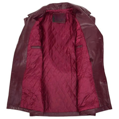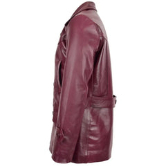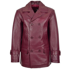 Make a bold impression this season with the Men's Burgundy Leather Peacoat. Expertly tailored from genuine leather, this coat brings a rich, standout tone to a timeless silhouette. It features a classic notch collar, adjustable sleeve cuffs, and a stylish waist belt for a sharp, structured fit. With two front flap pockets and inner compartments, it's both fashionable and functional. The premium inner lining ensures warmth and comfort, making it ideal for fall and winter layering. Whether you're headed out for a casual stroll or a weekend getaway, this peacoat delivers sophisticated outerwear with modern flair.