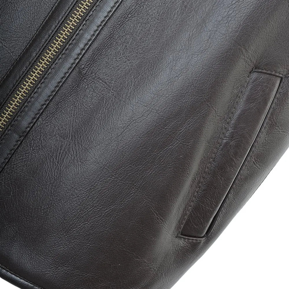 Stay warm and stylish with the Men's Dark Brown Aviator RAF Shearling Vest, inspired by classic Royal Air Force flight gear. Crafted from high-quality genuine leather with a rich dark brown hue, this vest features a plush shearling collar and premium inner lining for exceptional comfort in cold weather. Its rugged appeal is enhanced by durable stitching and a front zipper closure, making it perfect for layering over shirts or sweaters. Whether you're channeling vintage aviator vibes or simply looking for refined winter layering, this vest delivers both function and fashion.
