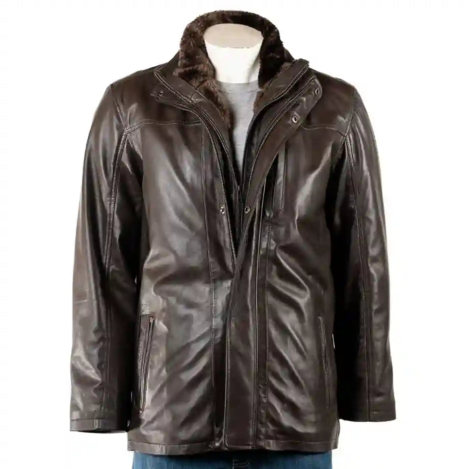 Step into the season with confidence in the Men's Smart Removable Inner Collar Brown Leather Coat. Made from high-quality genuine leather, this coat delivers warmth, durability, and elevated winter style. Its removable faux fur collar provides versatile wear—keep it on for added insulation or remove it for a streamlined look. The rich brown tone adds sophistication, while the zipper front with snap button placket ensures secure closure. Designed with a regular fit and premium lining, it’s perfect for layering over sweaters or shirts. Ideal for daily wear, travel, or outdoor outings, this coat offers style without compromising comfort.
