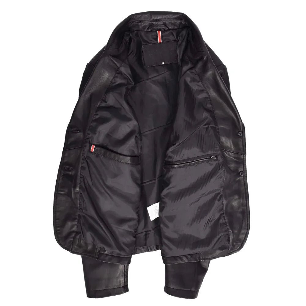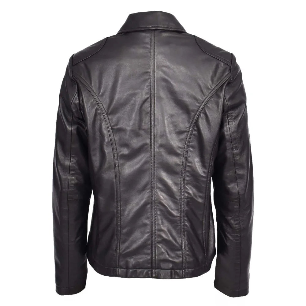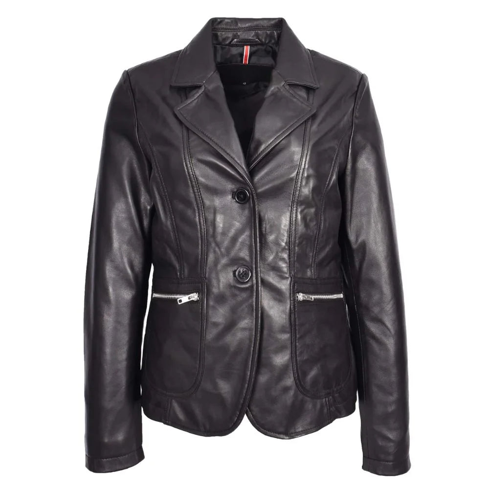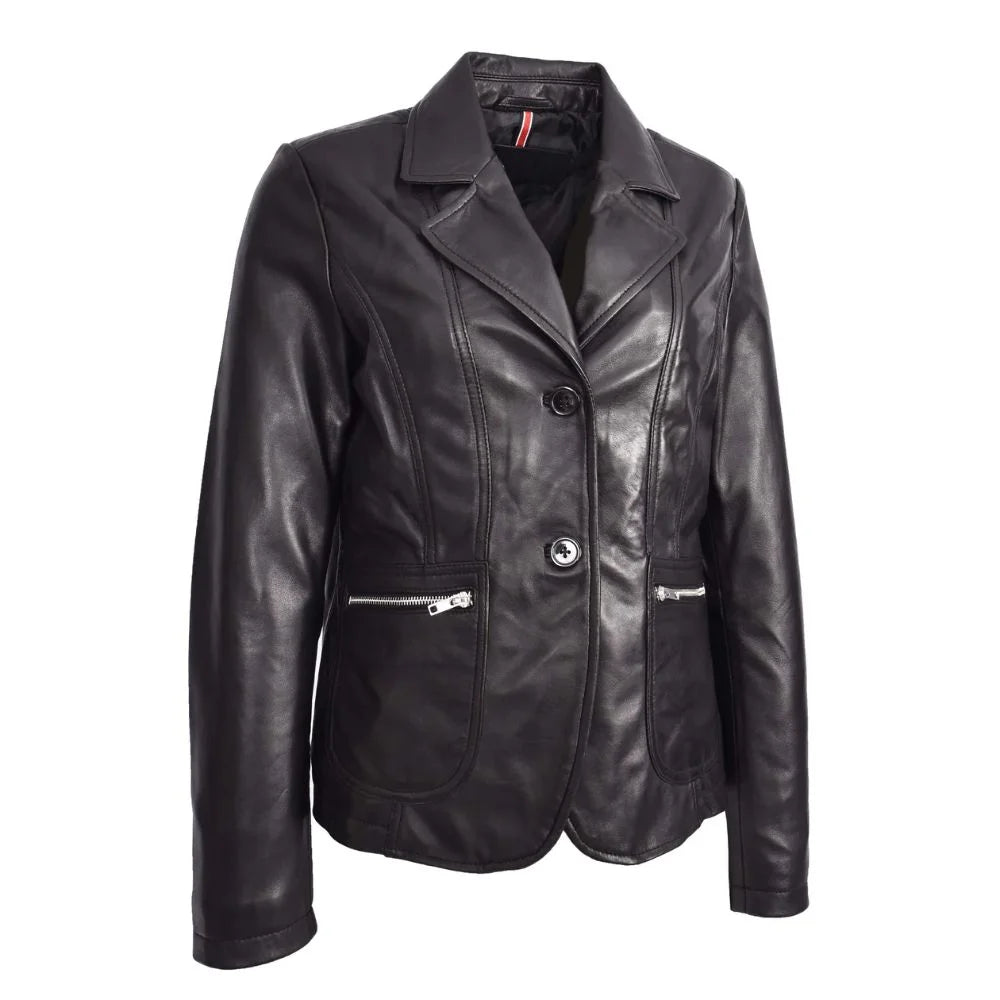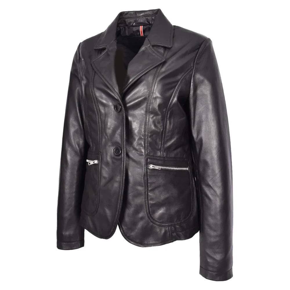Channel timeless sophistication with this Women’s Black Leather Jacket, a versatile piece that seamlessly blends professional polish with modern edge. Crafted from premium real leather, this blazer-style jacket is designed to elevate both work and casual looks. Its sleek tailoring and smooth finish create a refined silhouette, while the deep black color ensures effortless versatility for any wardrobe.