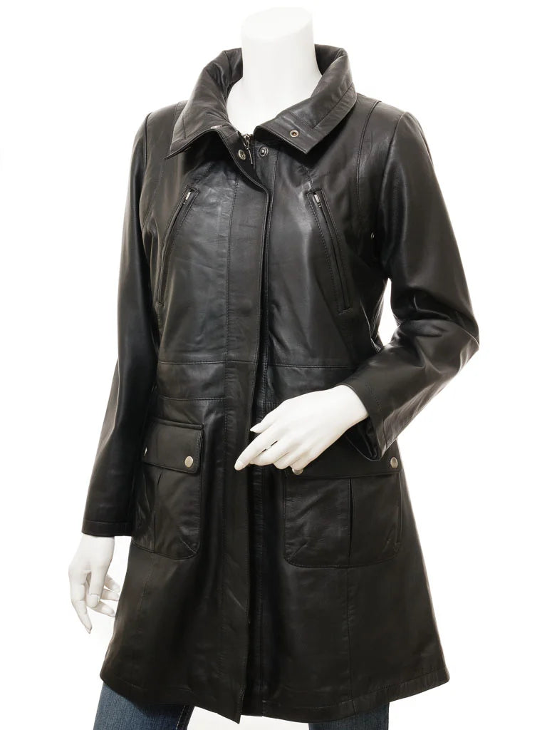 Embrace timeless sophistication with the Women’s Classic Black Leather Long Coat, a versatile outerwear piece designed to elevate your wardrobe with ease. Crafted from high-quality real leather, this coat boasts a sleek black finish that reflects understated elegance and lasting durability. Its tailored silhouette provides a refined feminine shape, while the mid-thigh to knee length offers both coverage and style, perfect for colder months.