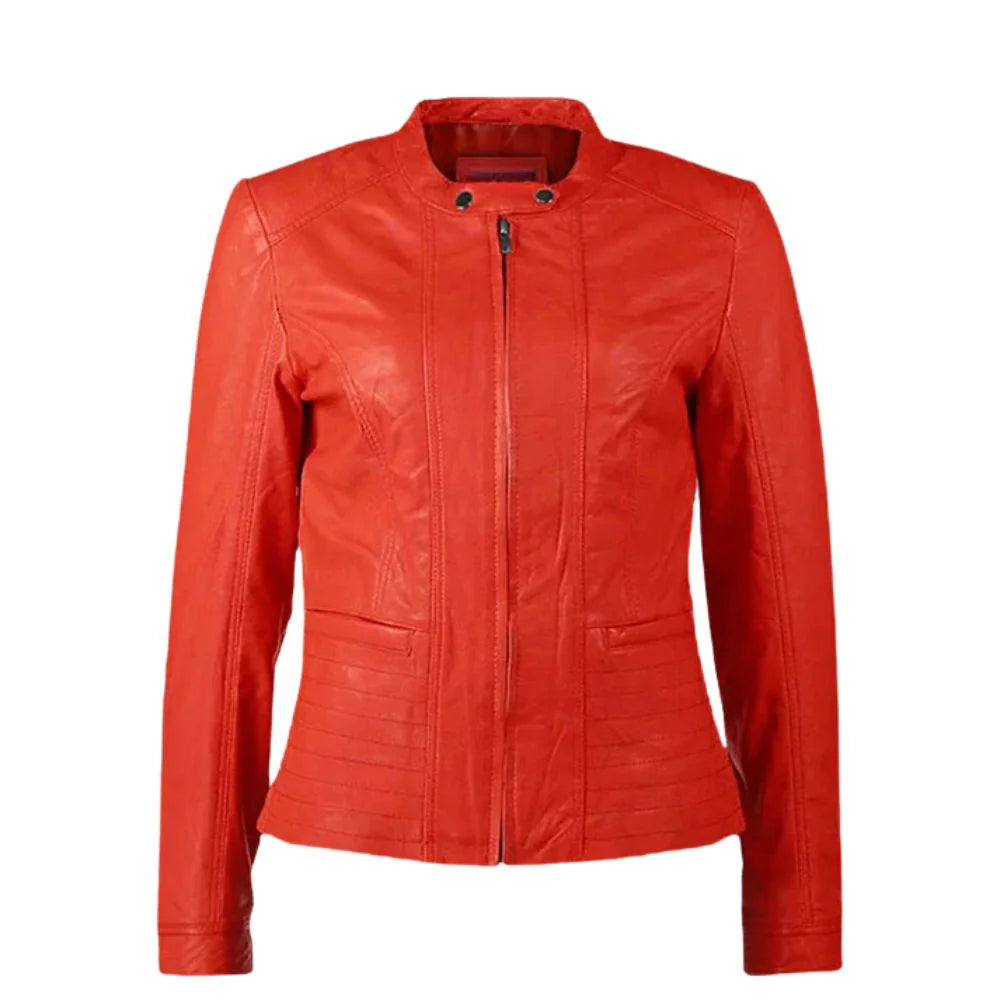 The Women’s Red Slim Fit Leather Jacket is a bold and stylish piece that adds confidence and elegance to any outfit. Crafted from real leather, it offers durability, a smooth texture, and a premium finish that ensures long-lasting wear. The red color makes it a standout addition to your wardrobe, while the slim fit silhouette highlights the feminine figure with a sleek and flattering shape.