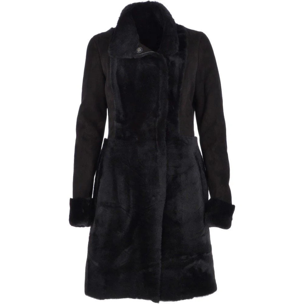 Indulge in warm extravagance and style in these black shearling fur women coats, perfect for keeping you snug all winter long while offering sheer sophistication. Richness black color adds elegance while remaining true to the traditional model of classic design, giving versatility both casual and formal surroundings. A relaxed, modern fit, full front closure, and deep pockets set this coat off. It is simple yet so comfortable as well as functional for your wardrobe during winter.