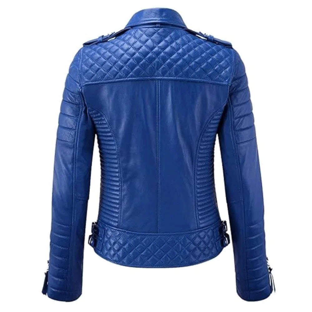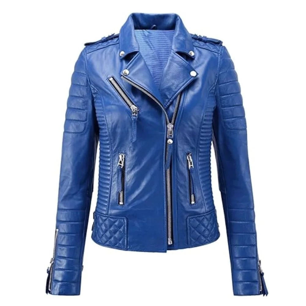 The Women's Blue Classic Leather Jacket is the perfect blend of luxury and contemporary style. Made from premium leather, this Womens Blue Classic Leather Jacket boasts a soft, buttery texture and a vibrant blue hue that adds a fresh, modern twist to your wardrobe. Its sleek, tailored fit and minimalist design make it a versatile choice for any occasion, whether you're heading out for a casual day or dressing up for an evening event. The lightweight nature of lambskin leather ensures comfort, while the timeless Classic elements bring a bold edge to your look.